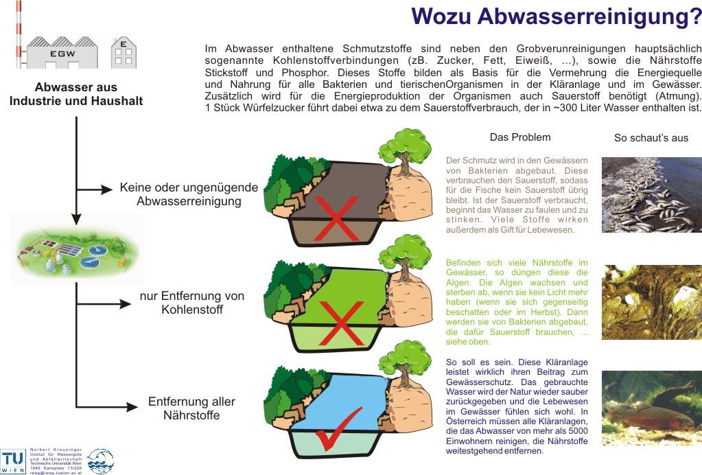 - Im Nachklärbecken sinken die "satten" Mikroorganismen zu Boden. Das gereinigte Wasser wird nun in den Bach oder Fluß abgeleitet.