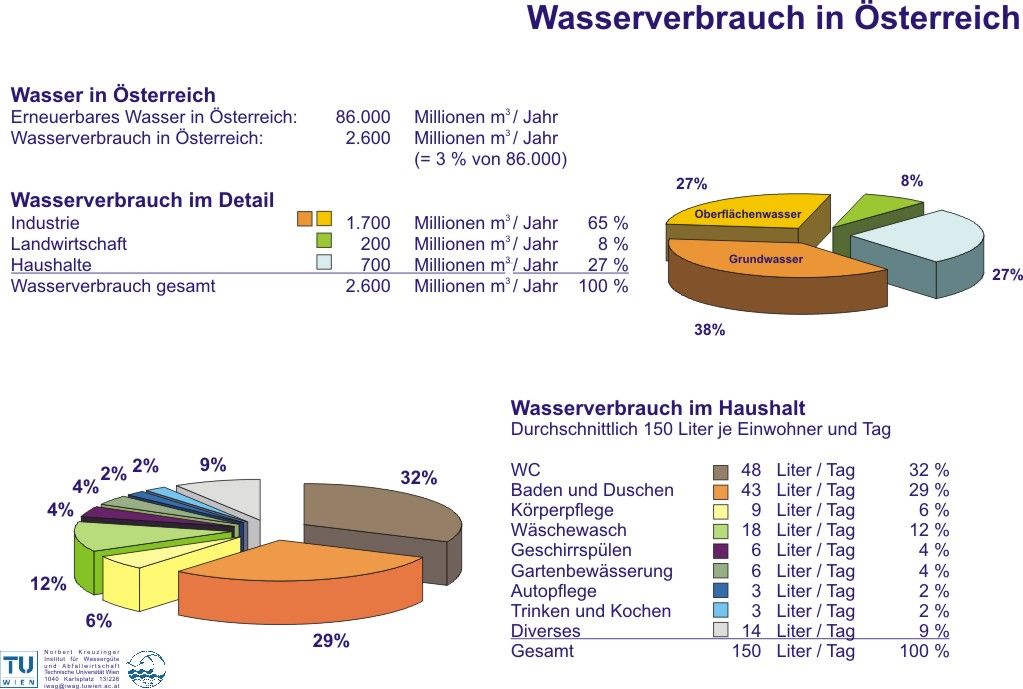 Was wird täglich (durchschnittlich) an Wasser pro Tag von jedem von uns verbraucht?