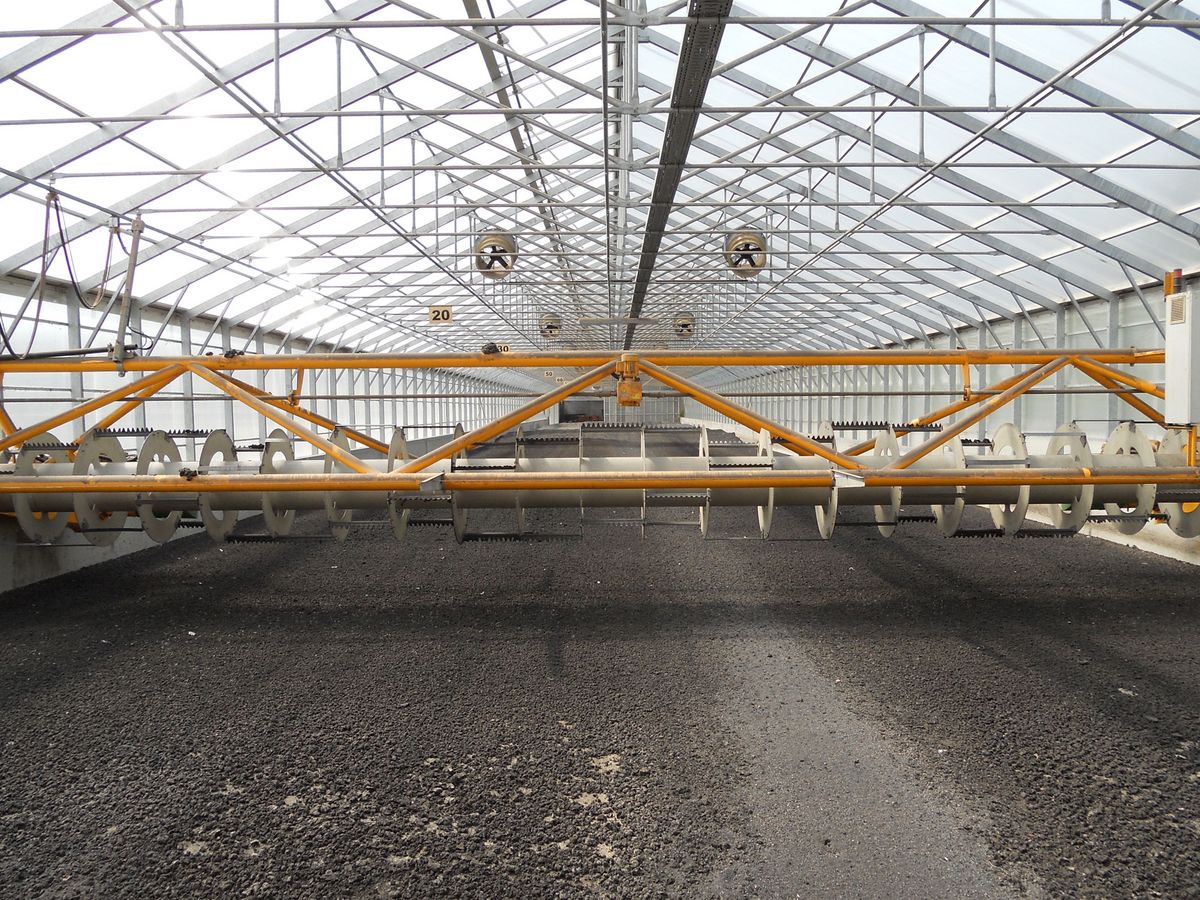 Der stabilisierte und gepresste Klärschlamm kommt in ein Glashaus zur Trocknung. Das Glashaus besitzt eine Abmessung von 96 x 12 Meter. In diesem Glashaus ist eine Wendeeinrichtung, die den Klärschlamm umwälzt und je nach Trocknungszustand weitertransportiert, bis dieser am Ende des Glashauses mit einem TS–Gehalt von mind. 75 % (nur mehr 25% Wasser) ankommt. Von dort kann der Klärschlamm verladen und z.B. in ein Zementwerk zur Verbrennung gebracht werden. Zum Regelbrennstoff des Zementofens wird der Klärschlamm beigegeben und verbrennt ohne Rückstände. Der Heizwert des Klärschlammes ist vergleichbar mit Braunkohle.