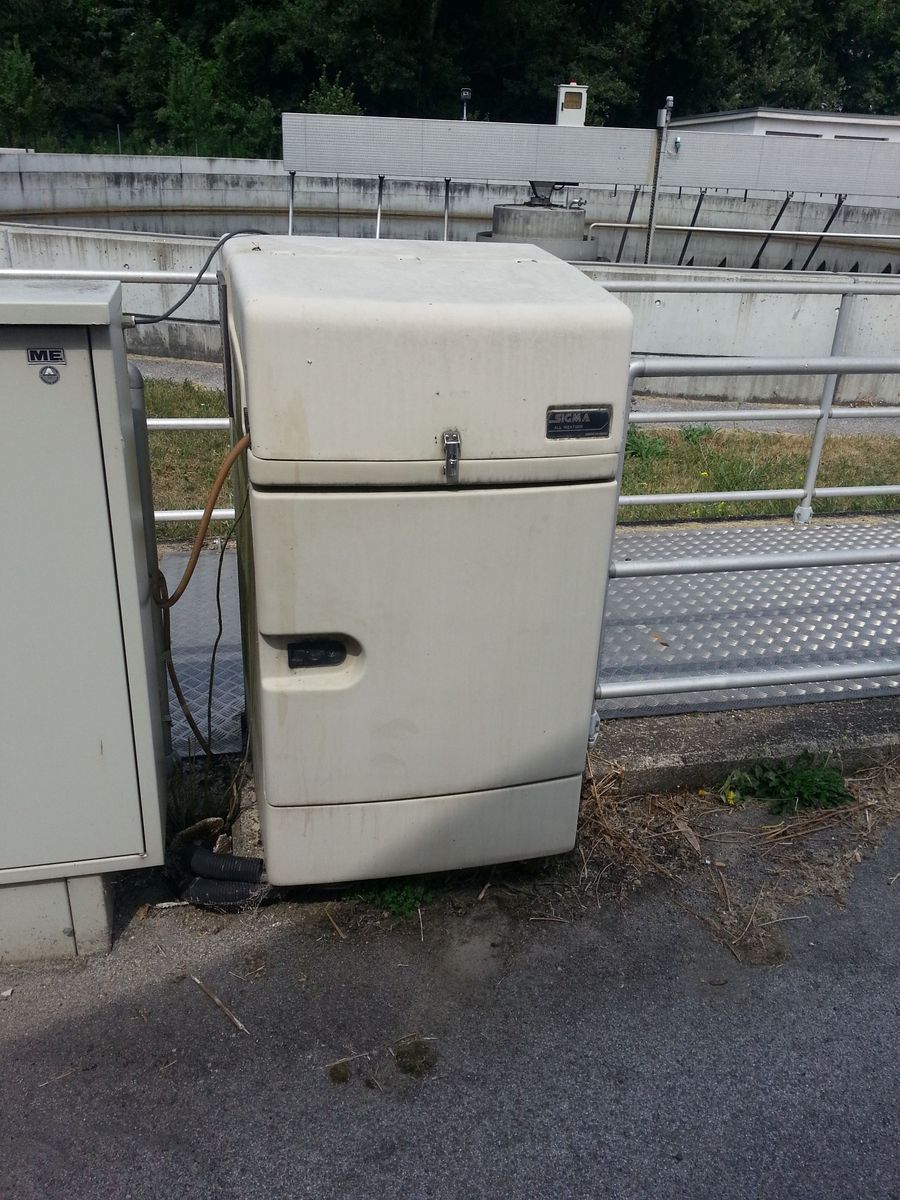 Bei der Ablaufmessung werden nun automatisch Proben vom Ablauf (= das gereinigte Abwasser) in den Vorfluter (Leitha) gezogen und damit der Grad der Reinigung festgestellt.