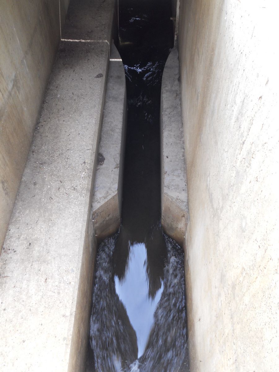 Auch die Ablaufmenge wird hier mittels einer Venturi-Messstrecke gemessen und registriert, damit die täglichen Ablauffrachten festgestellt werden können.