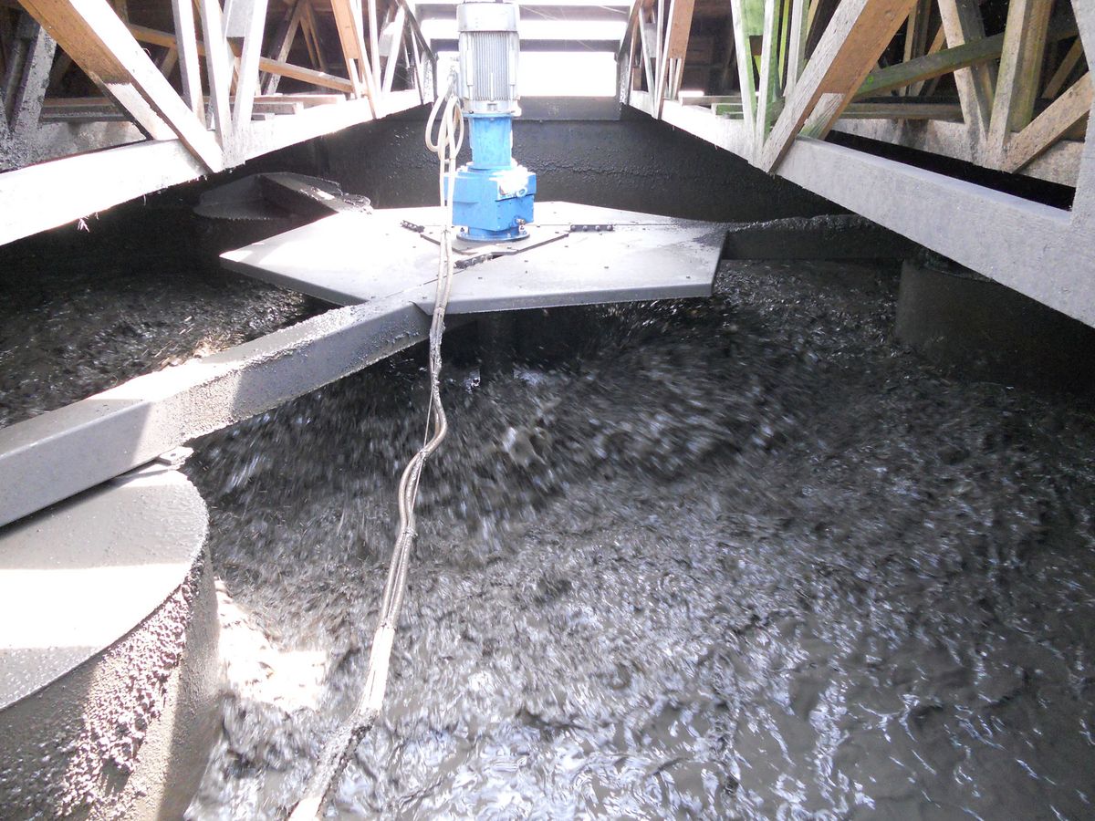 Die Belebtschlammflocken und die Mikroorganismen dürfen nicht zu Boden sinken, um den biologischen Reinigungsprozess nicht zu gefährden. Daher muß das Abwasser-Belebtschlammgemisch ständig im Umlauf gehalten werden. Wenn die Rotoren stehen (kein Sauerstoffbedarf), dann übernehmen Rührwerke diese Funktion.