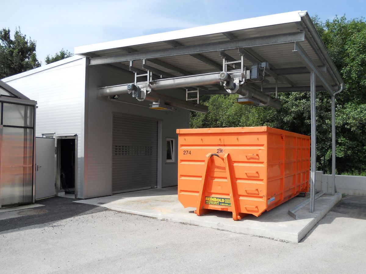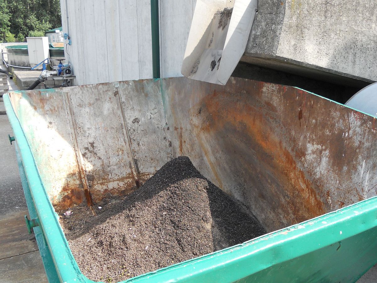 Sollte sich der Schlamm auf Grund der Außen- oder Schlammtemperatur (oder der Güteklasse) nicht zur Weiterverarbeitung in der Solaren Trocknungshalle eignen, haben wir hier die Möglichkeit direkt in Container zu pressen. So kann der gepresste Schlamm dann ebenfalls der Kompostierung oder Vererdung (im ungünstigsten Falle einer Deponie) zugeführt werden.
